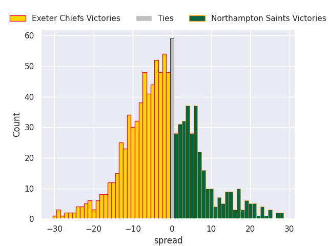 Average Margin: Exeter Chiefs by 1.0