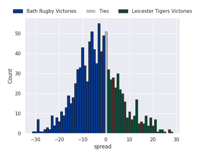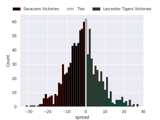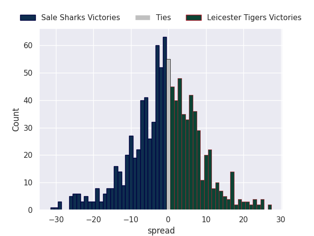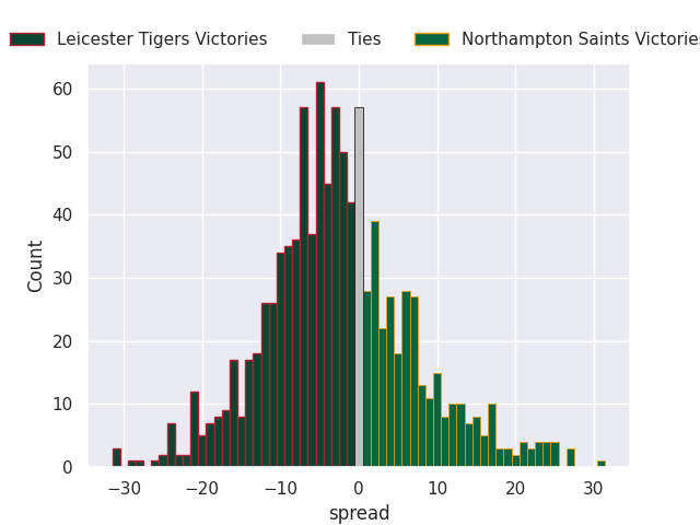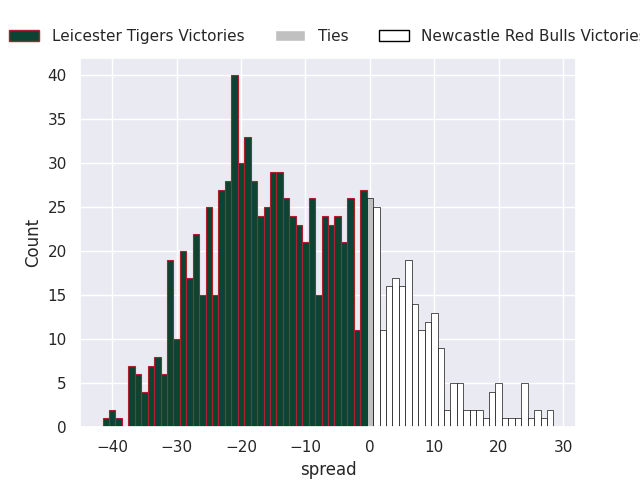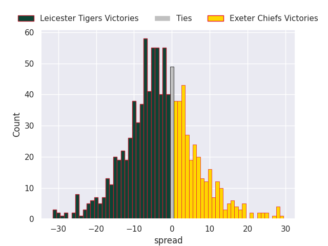 Average Margin: Leicester Tigers by 3.1