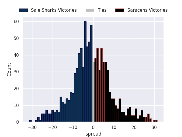 Average Margin: Saracens by 0.7