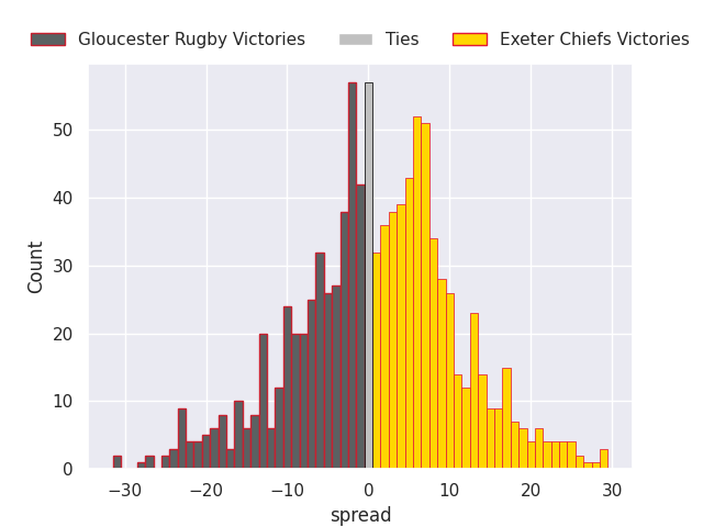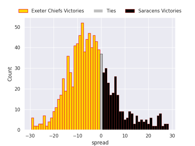 Average Margin: Exeter Chiefs by 0.9