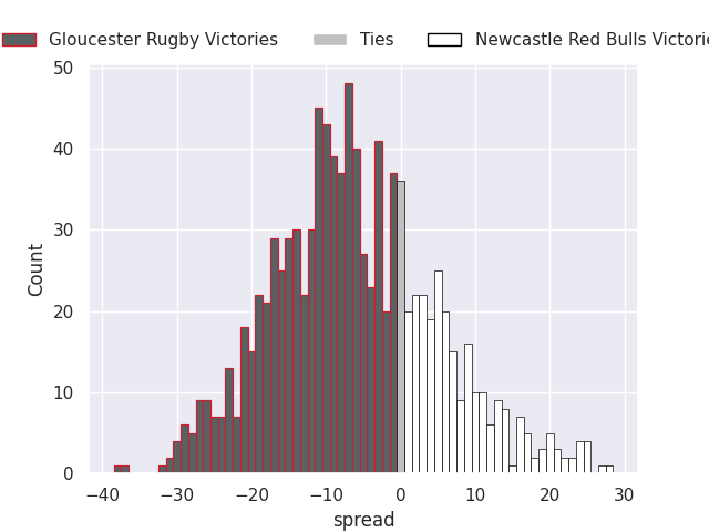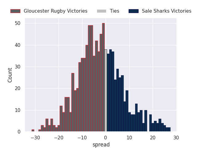 Average Margin: Gloucester Rugby by 2.3