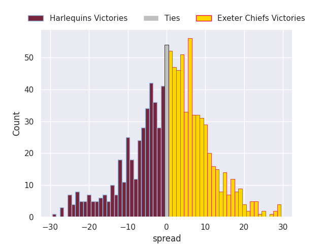 Average Margin: Exeter Chiefs by 2.0