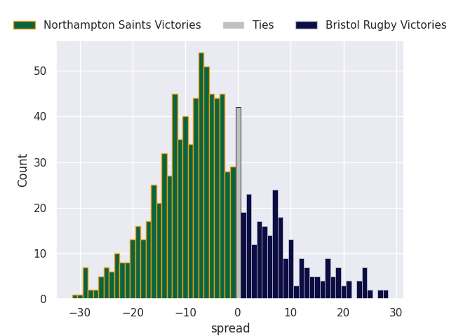 Average Margin: Northampton Saints by 5.0