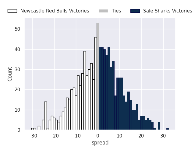Average Margin: Northampton Saints by 12.5