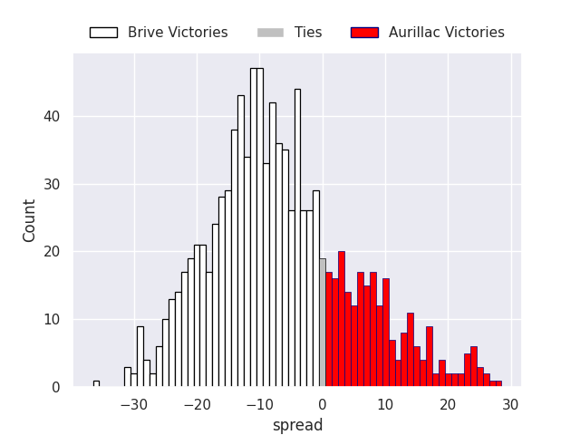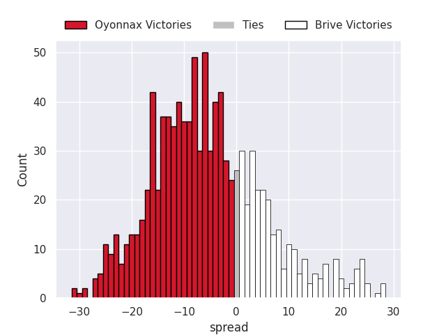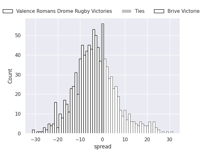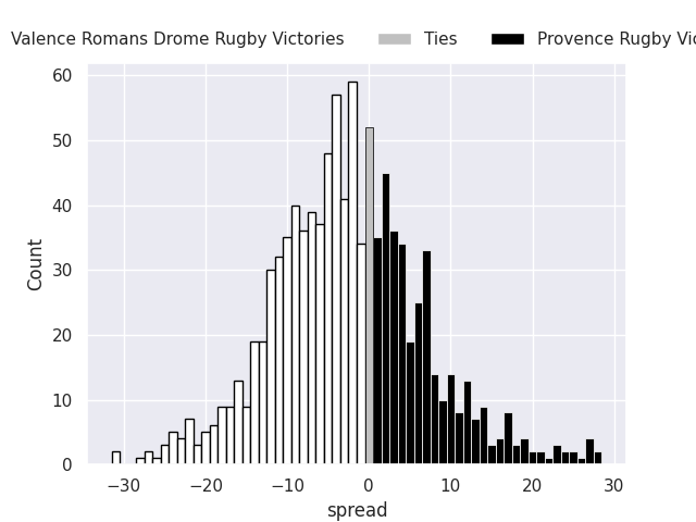 Average Margin: Valence Romans Drome Rugby by 2.5