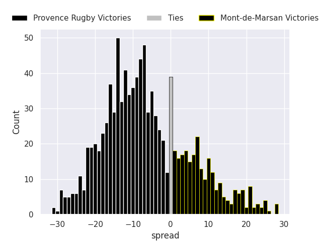 Average Margin: Provence Rugby by 6.4