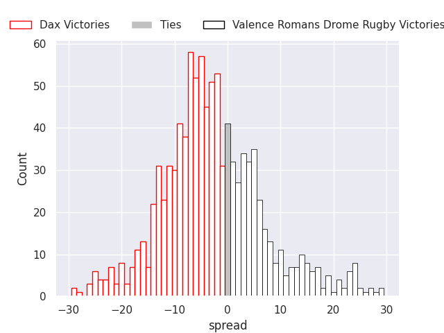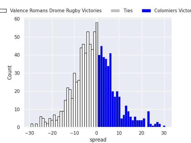 Average Margin: Valence Romans Drome Rugby by 1.3