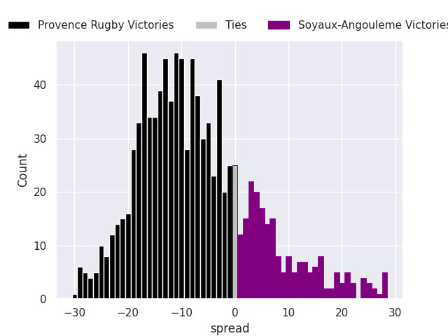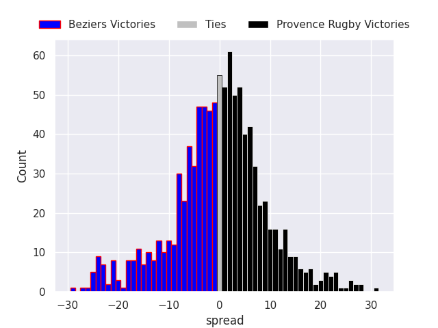 Average Margin: Provence Rugby by 7.3