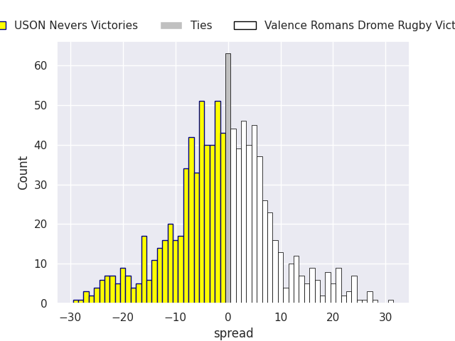 Average Margin: Valence Romans Drome Rugby by 3.3