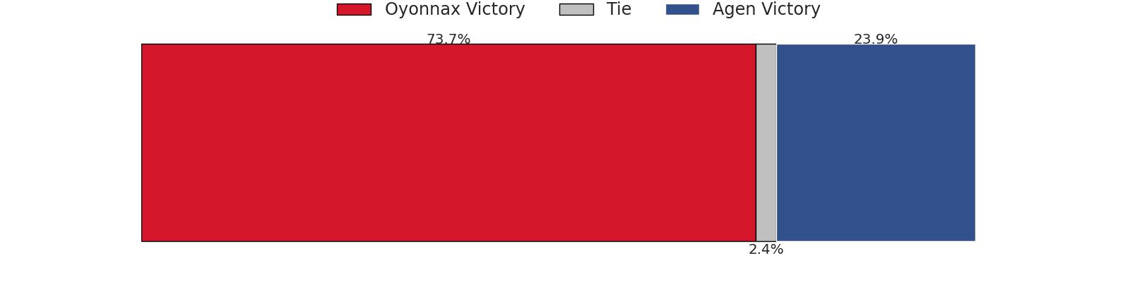 | Agen | 23 | 12 | 74 | 4 | 7 | 59 |