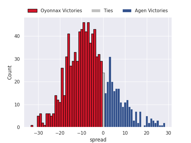 Average Margin: Provence Rugby by 2.9