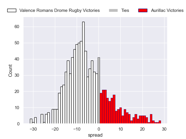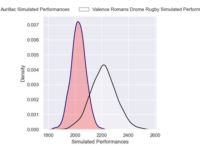 Each club has a rating and a rating deviation (similar to a Glicko rating), and expected performances can be generated. This allows for simulated matches and spreads like the ones below.