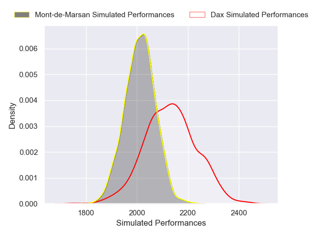 Each club has a rating and a rating deviation (similar to a Glicko rating), and expected performances can be generated. This allows for simulated matches and spreads like the ones below.