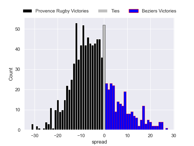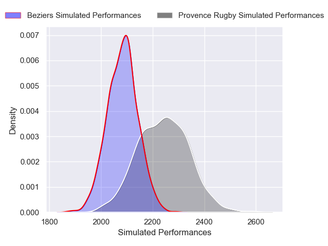 The first set of predictions treats a club as the smallest object, as the club develops its members, organizes a gameplan, and deploys its players as needed for each match. This club model is currently predicting Provence Rugby to win by 4.61.