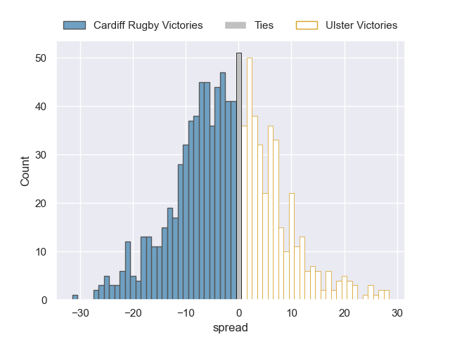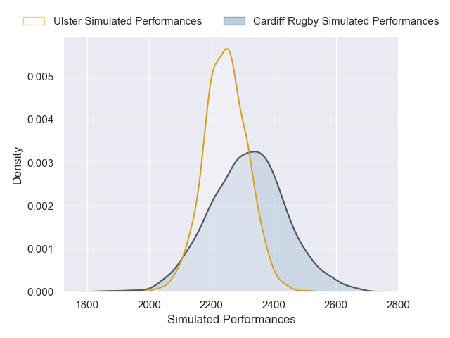 Each club has a rating and a rating deviation (similar to a Glicko rating), and expected performances can be generated. This allows for simulated matches and spreads like the ones below.