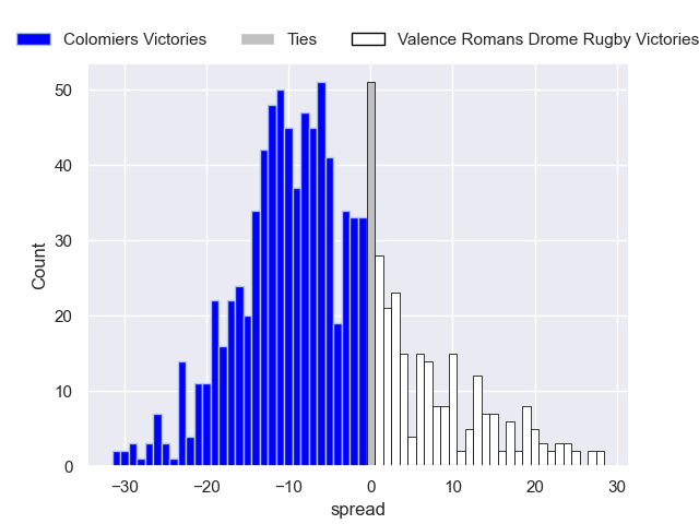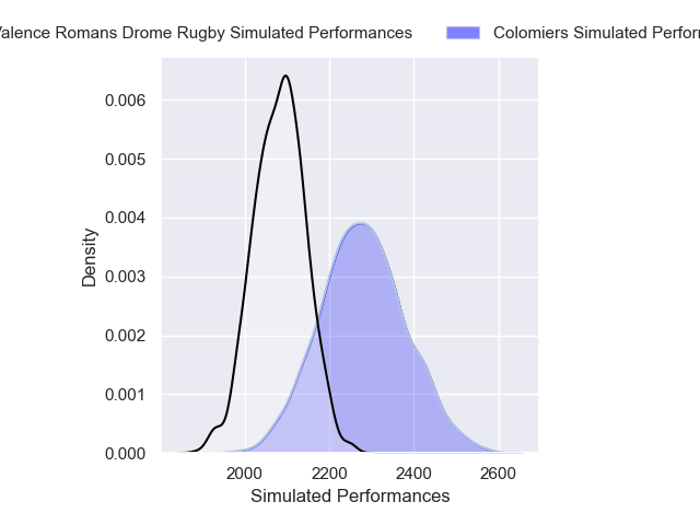 Each club has a rating and a rating deviation (similar to a Glicko rating), and expected performances can be generated. This allows for simulated matches and spreads like the ones below.