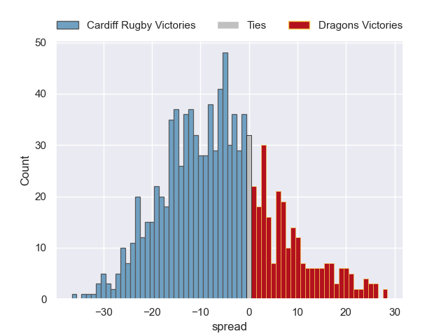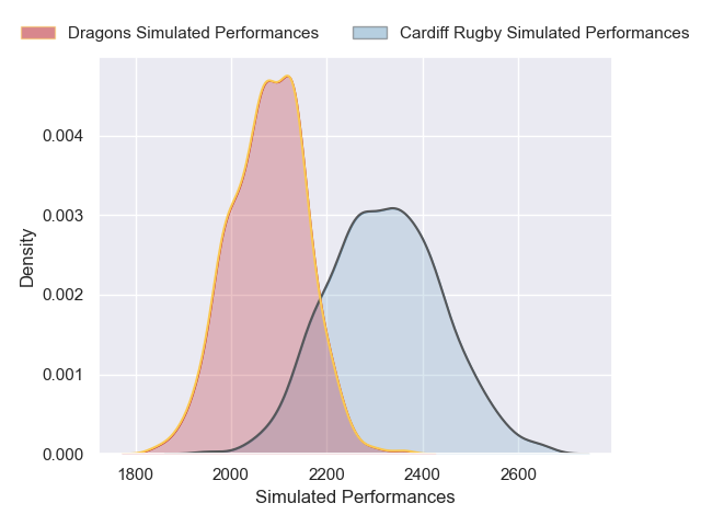 Each club has a rating and a rating deviation (similar to a Glicko rating), and expected performances can be generated. This allows for simulated matches and spreads like the ones below.