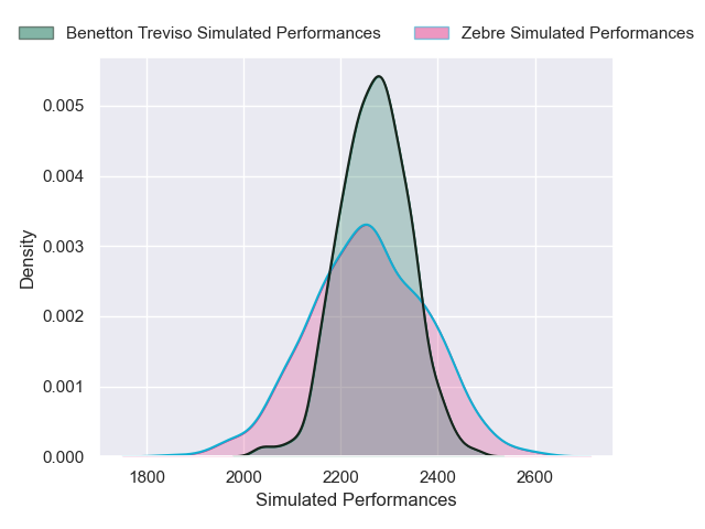 Each club has a rating and a rating deviation (similar to a Glicko rating), and expected performances can be generated. This allows for simulated matches and spreads like the ones below.