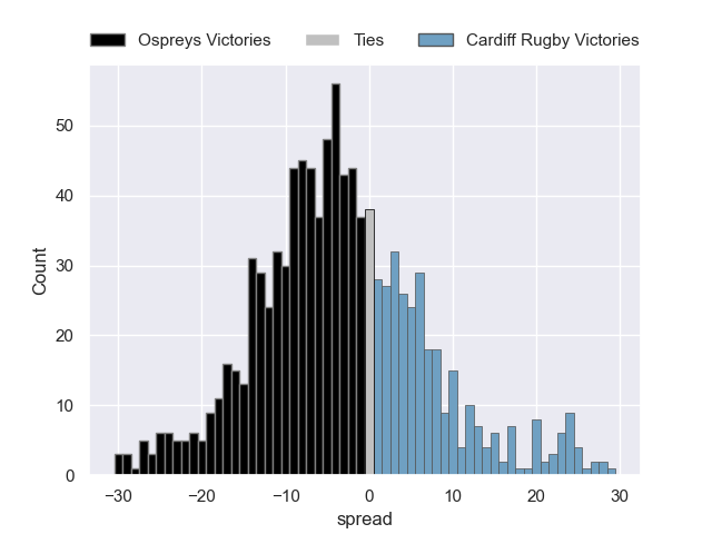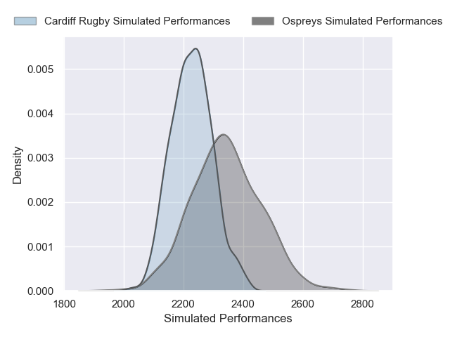 Each club has a rating and a rating deviation (similar to a Glicko rating), and expected performances can be generated. This allows for simulated matches and spreads like the ones below.