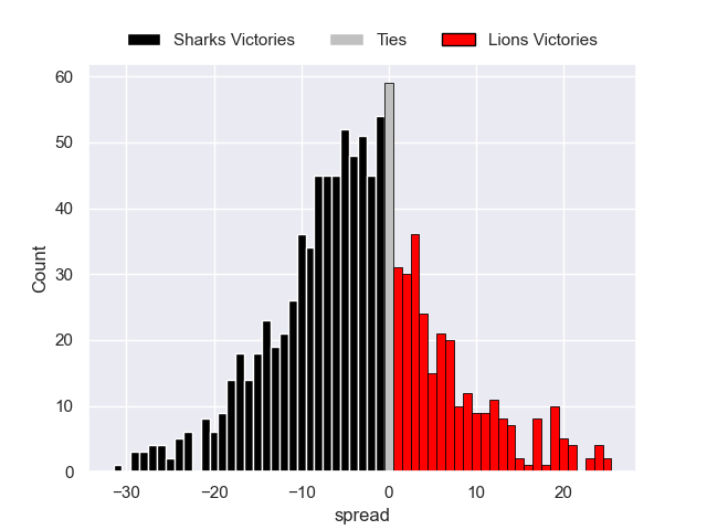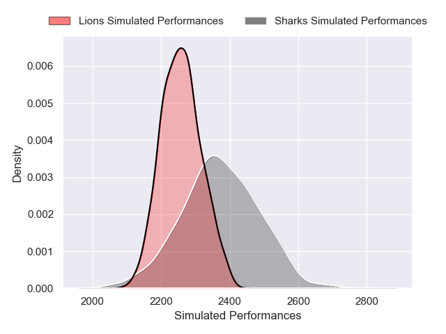 Each club has a rating and a rating deviation (similar to a Glicko rating), and expected performances can be generated. This allows for simulated matches and spreads like the ones below.
