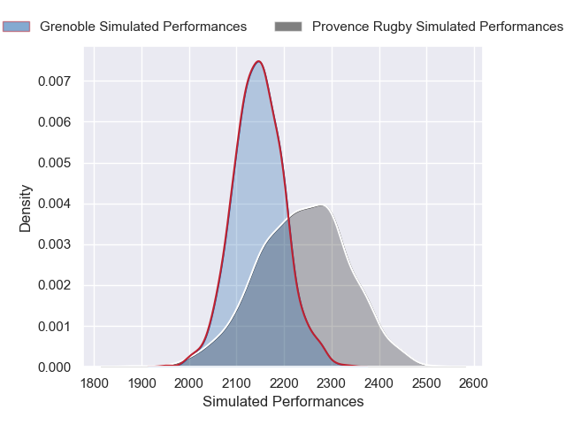 The first set of predictions treats a club as the smallest object, as the club develops its members, organizes a gameplan, and deploys its players as needed for each match. This club model is currently predicting Provence Rugby to win by 2.62.