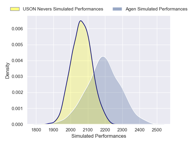 Each club has a rating and a rating deviation (similar to a Glicko rating), and expected performances can be generated. This allows for simulated matches and spreads like the ones below.