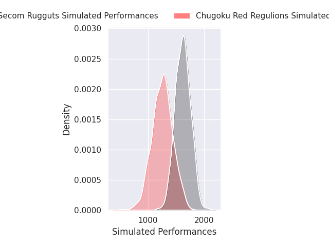 Each club has a rating and a rating deviation (similar to a Glicko rating), and expected performances can be generated. This allows for simulated matches and spreads like the ones below.
