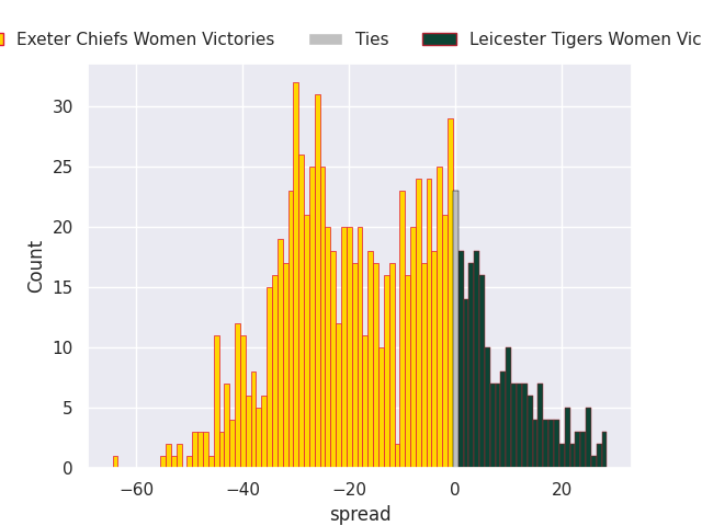 The first set of predictions treats a club as the smallest object, as the club develops its members, organizes a gameplan, and deploys its players as needed for each match. This club model is currently predicting Exeter Chiefs Women to win by 14.42.
