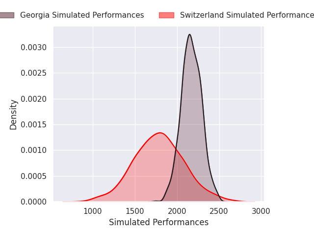 Each club has a rating and a rating deviation (similar to a Glicko rating), and expected performances can be generated. This allows for simulated matches and spreads like the ones below.