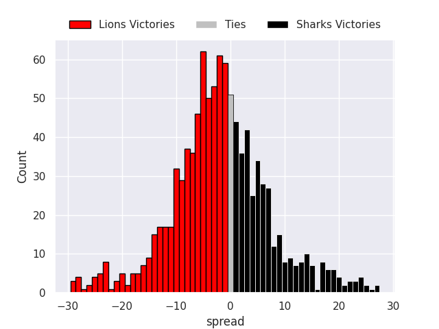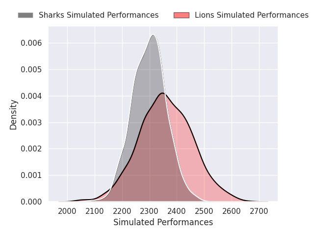 Each club has a rating and a rating deviation (similar to a Glicko rating), and expected performances can be generated. This allows for simulated matches and spreads like the ones below.