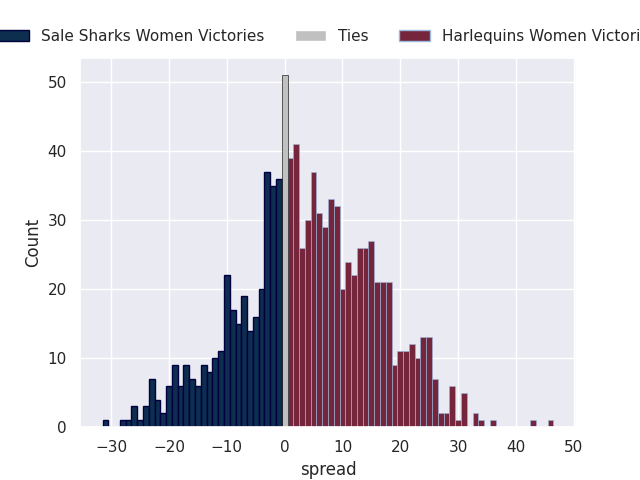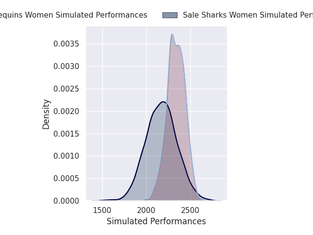 The first set of predictions treats a club as the smallest object, as the club develops its members, organizes a gameplan, and deploys its players as needed for each match. This club model is currently predicting Harlequins Women to win by 4.12.