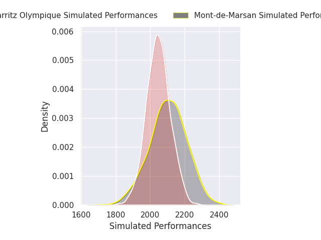 Each club has a rating and a rating deviation (similar to a Glicko rating), and expected performances can be generated. This allows for simulated matches and spreads like the ones below.