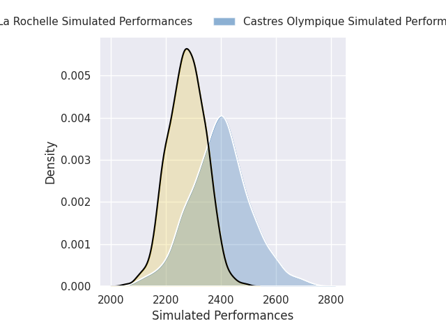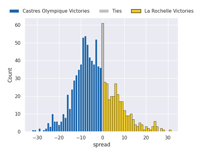 Each club has a rating and a rating deviation (similar to a Glicko rating), and expected performances can be generated. This allows for simulated matches and spreads like the ones below.