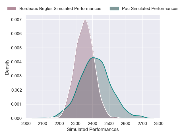 Each club has a rating and a rating deviation (similar to a Glicko rating), and expected performances can be generated. This allows for simulated matches and spreads like the ones below.