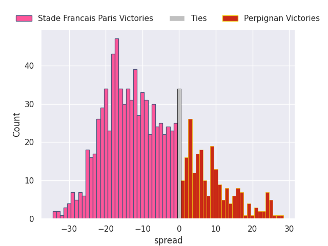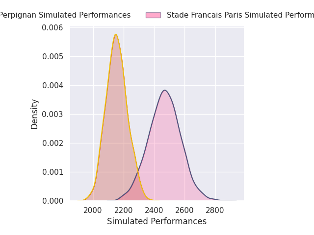 Each club has a rating and a rating deviation (similar to a Glicko rating), and expected performances can be generated. This allows for simulated matches and spreads like the ones below.