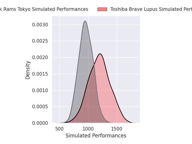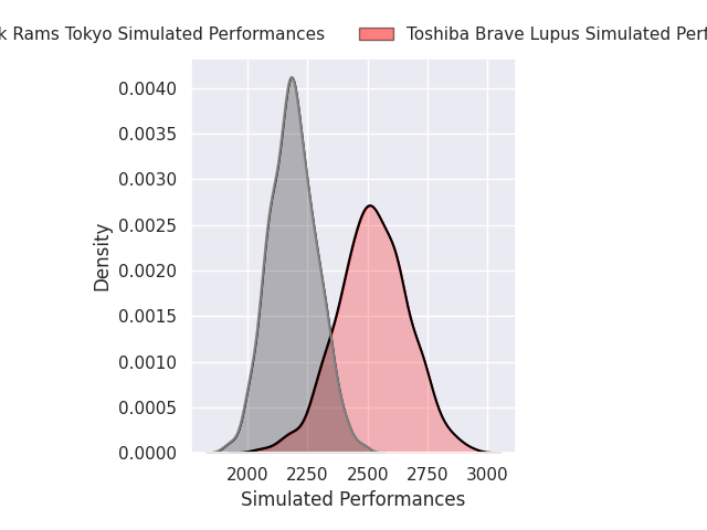 The second set of predictions is based around the players themselves - each player gets a rating, and their contribution is weighted by their time on the field. The player model is currently predicting Toshiba Brave Lupus to win by 5.26