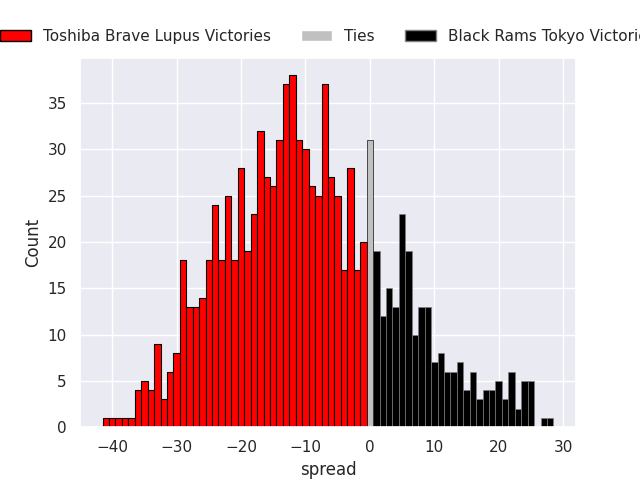 The first set of predictions treats a club as the smallest object, as the club develops its members, organizes a gameplan, and deploys its players as needed for each match. This club model is currently predicting Toshiba Brave Lupus to win by 9.28.