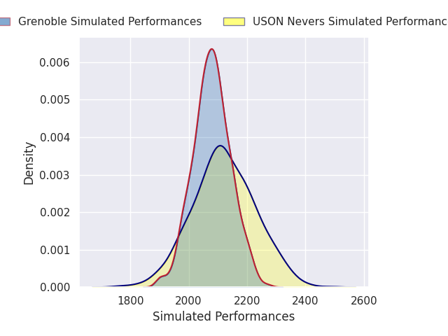 Each club has a rating and a rating deviation (similar to a Glicko rating), and expected performances can be generated. This allows for simulated matches and spreads like the ones below.