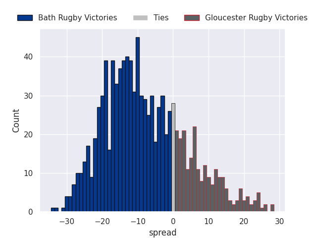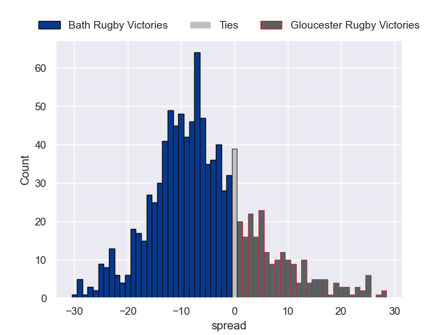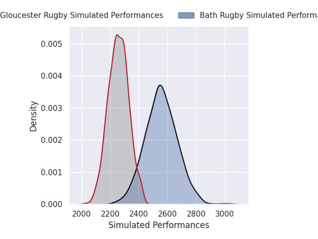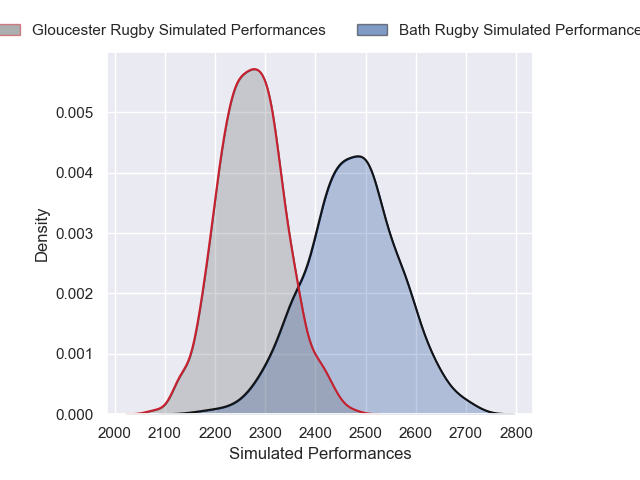 Each club has a rating and a rating deviation (similar to a Glicko rating), and expected performances can be generated. This allows for simulated matches and spreads like the ones below.