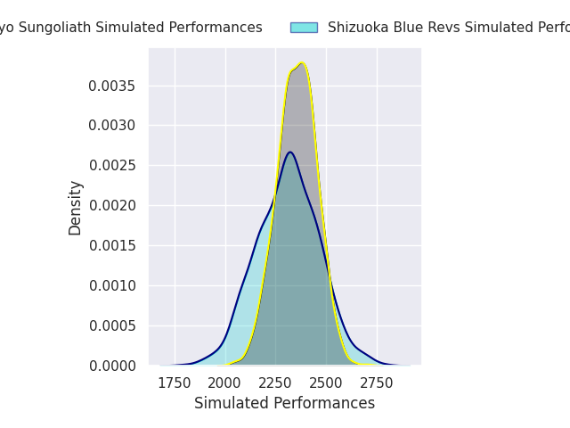 Each club has a rating and a rating deviation (similar to a Glicko rating), and expected performances can be generated. This allows for simulated matches and spreads like the ones below.
