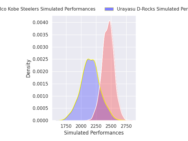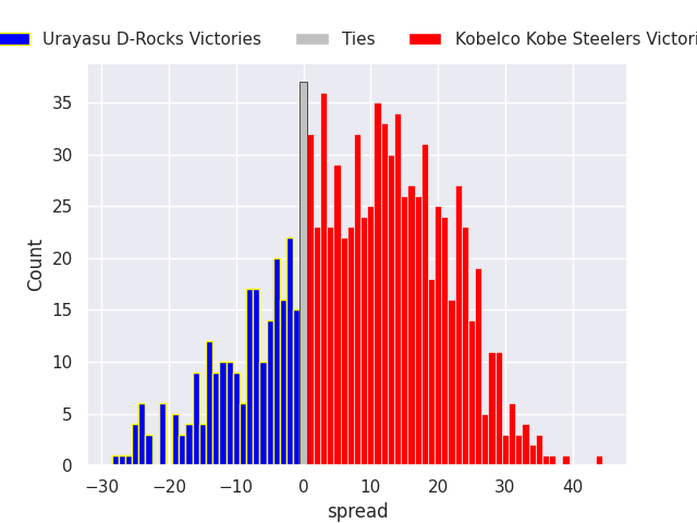The first set of predictions treats a club as the smallest object, as the club develops its members, organizes a gameplan, and deploys its players as needed for each match. This club model is currently predicting Kobelco Kobe Steelers to win by 8.04.