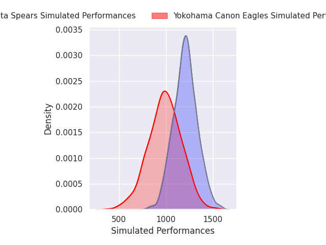 Each club has a rating and a rating deviation (similar to a Glicko rating), and expected performances can be generated. This allows for simulated matches and spreads like the ones below.
