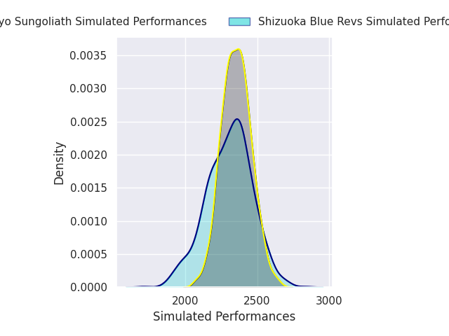 Each club has a rating and a rating deviation (similar to a Glicko rating), and expected performances can be generated. This allows for simulated matches and spreads like the ones below.