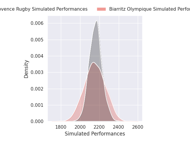 The first set of predictions treats a club as the smallest object, as the club develops its members, organizes a gameplan, and deploys its players as needed for each match. This club model is currently predicting Provence Rugby to win by 0.49.