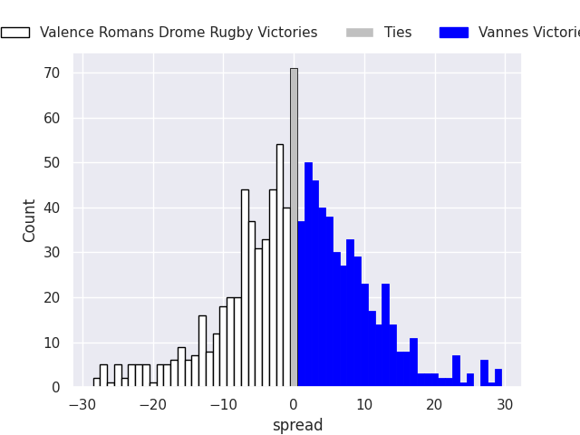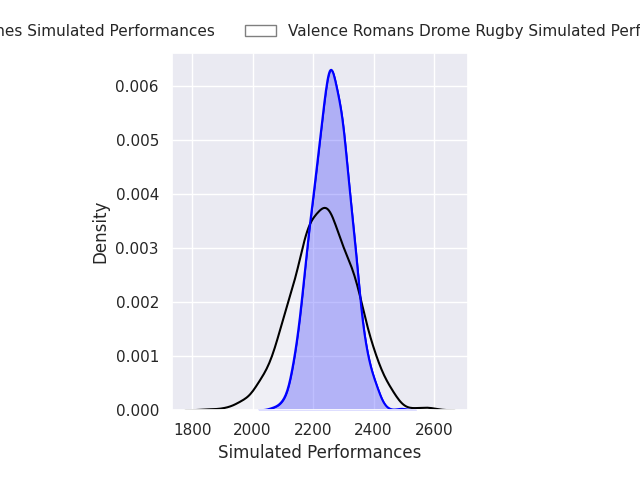 Each club has a rating and a rating deviation (similar to a Glicko rating), and expected performances can be generated. This allows for simulated matches and spreads like the ones below.