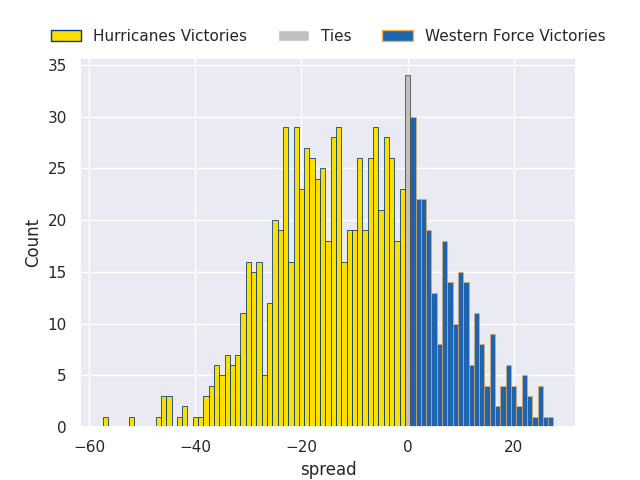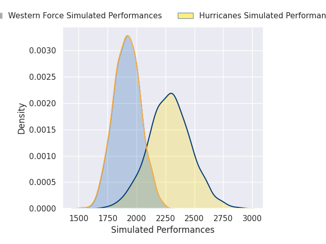 Each club has a rating and a rating deviation (similar to a Glicko rating), and expected performances can be generated. This allows for simulated matches and spreads like the ones below.