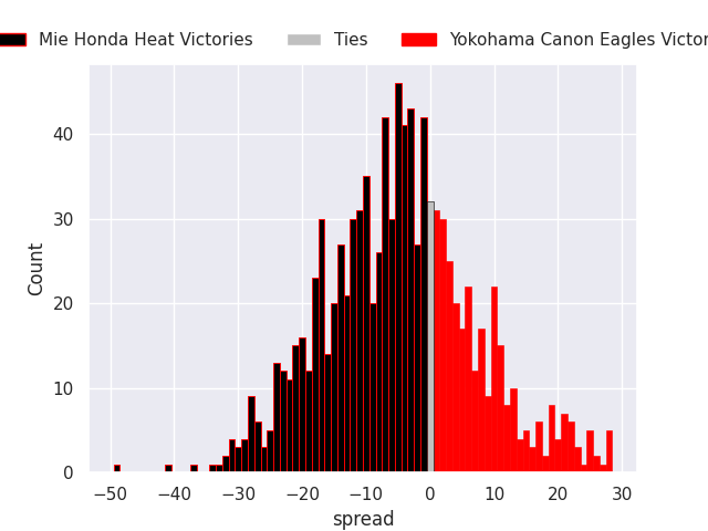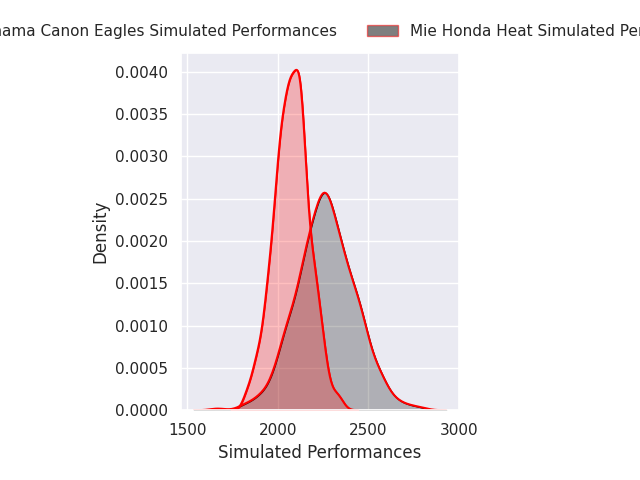 The first set of predictions treats a club as the smallest object, as the club develops its members, organizes a gameplan, and deploys its players as needed for each match. This club model is currently predicting Mie Honda Heat to win by 4.89.