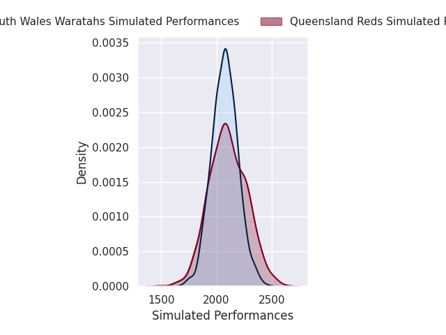 Each club has a rating and a rating deviation (similar to a Glicko rating), and expected performances can be generated. This allows for simulated matches and spreads like the ones below.