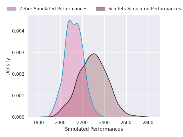 Each club has a rating and a rating deviation (similar to a Glicko rating), and expected performances can be generated. This allows for simulated matches and spreads like the ones below.