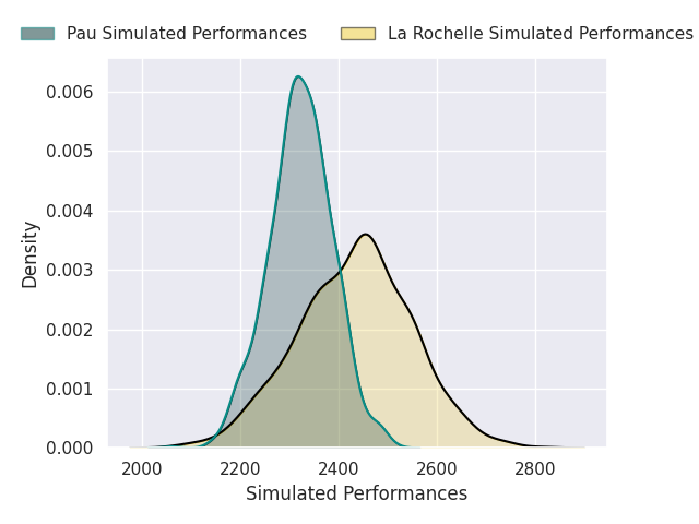 Each club has a rating and a rating deviation (similar to a Glicko rating), and expected performances can be generated. This allows for simulated matches and spreads like the ones below.